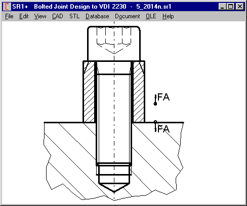 SR1+ calculates more precise. Outside the selected clamping plates of load introduction, maximum pressure is calculated with FSAmax, and inside FA introduction positions without FSAmax (in assembly state). In case of compressive load, outside the load introduction positions, formula according to VDI 2230 is valid (with FSA=0). But inside the FA position, compressive load share FPA must be added. pBmax = (FVmax – FPAmin – deltaFVth) / Apmin (with FPAmin < 0)
