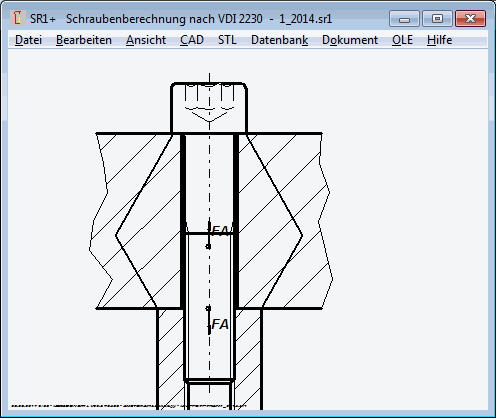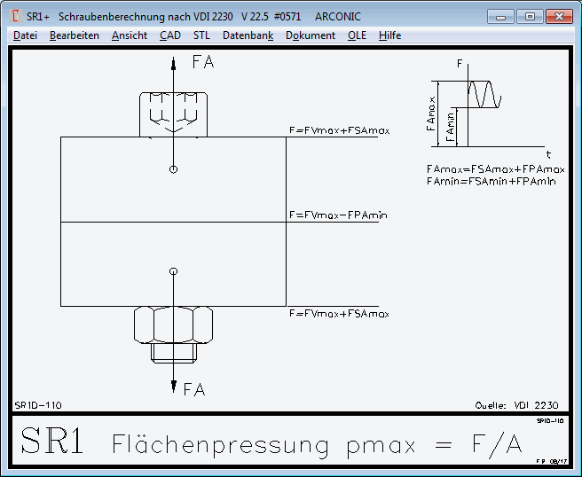 In SR1+ wird genauer gerechnet. Außerhalb der gewählten Klemmteile von Krafteinleitung und Kraftausleitung wird mit FSAmax gerechnet, innerhalb wird der Montagezustand gerechnet ohne FSAmax. Bei Druckbeanspruchung gilt außerhalb der Klemmplatten mit Krafteinleitung und Kraftausleitung die Formel aus VDI 2230 mit FSAmax=0. Aber zwischen den Klemmplatten mit Krafteinleitung und Kraftausleitung gilt aber eine um –FPA erhöhte Kraft: