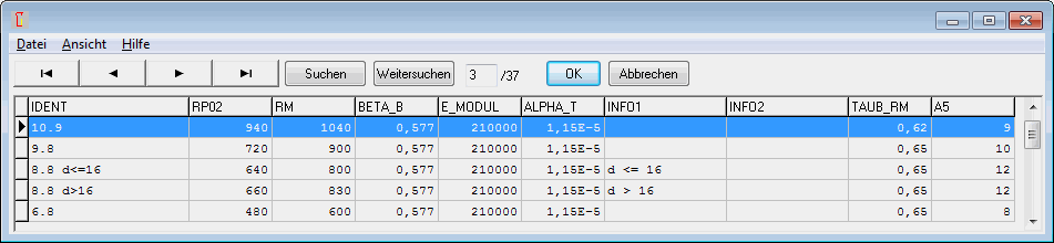 Die Datenbankangaben für die Streckgrenze ist eigentlich die 0,2% Proportionalitätsgrenze. Die Überschriften bei den Werkstoffdatenbanken von Schraubenwerkstoffen und Plattenwerkstoff wurde geändert. Daten ändern sich keine, nur die Überschrift.