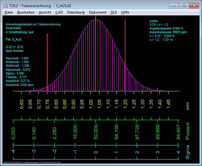TOL2 – Berechnung Ausschußrate bei vorgegebenen Grenzmaßen
