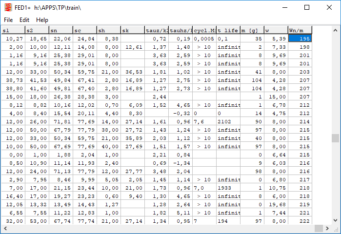 In the spring programs a new factor is introduced: energy-mass-ratio (W0n/m) as indicator, how much energy can be stored with 1 kg of spring material. This allows you to compare different spring types, materials and cross-sectional shapes. Therefore, "Wn/m" is also included in the table under "File-> Open Table".