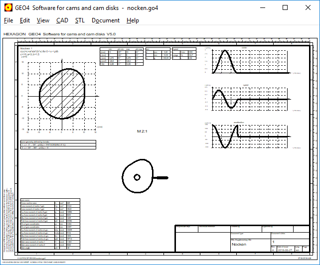 For cams and noncircular gears, a table with area, area moments of inertia and coordinates of gravitation center has been added. Calculation and table are same as in GEO1.