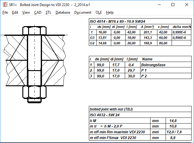Thread strip calculation factors C1, C2 and C3 of VDI 2230 have been added to the printout of SR1+ for proof and recalculation purpose.