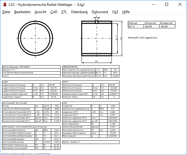 Neu in LG2 sind die Quick3- und Quick4-Ansicht: Zeichnung der berechneten Gleitlagerung mit Abmessungen und Berechnungsergebnissen auf einer Seite.