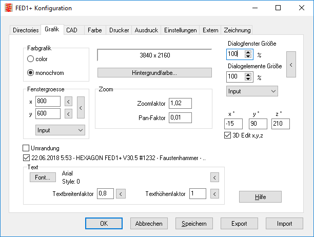 Wenn unter Windows große Schriften oder spezielle Dialogfenster konfiguriert wird, werden die Dialogfenster zu groß oder zu klein dargestellt. Dann muss man unter "Datei\Einstellungen\Grafik" "Dialogfenstergröße" und dazu passend "Dialogelementegröße" konfigurieren. Standardeinstellung ist 100%. In früheren Versionen konnte man das Dialogfenster noch größer oder kleiner ziehen, aber in neueren Versionen gab es meist keine Scrollbalken mehr. Man musste also zuerst die Dialogfenstergrösse richtig konfigurieren. Diese Änderung wurde jetzt wieder rückgängig gemacht auf Dialogfenster zum größer ziehen, so daß man auch bei falscher Konfiguration nicht gezwungen ist, die Berechnung abzubrechen und zuerst die Dialogfenster zu konfigurieren.
