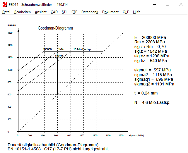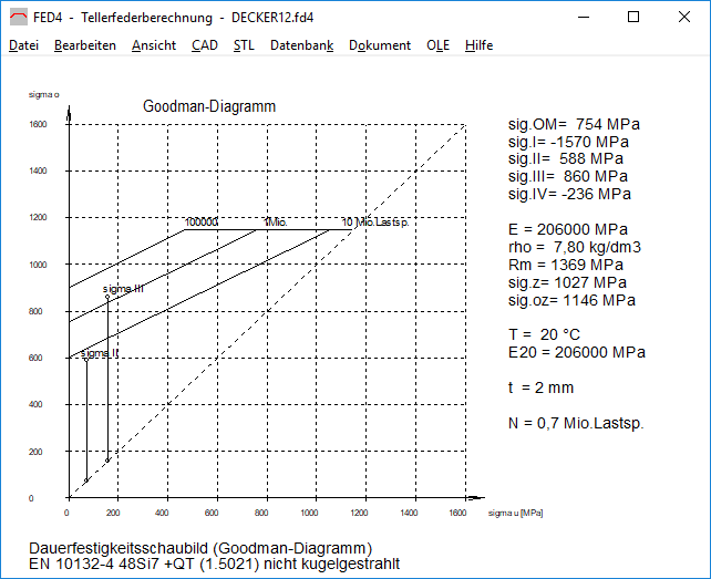 Für Federstähle nach EN 10132-4 aus der Werkstoffdatenbank fed9wst.dbf wird nun auch ein Goodman-Diagramm angezeigt. Die Daten stammen aus der DIN 2093:2013-12 für Tellerfedern.