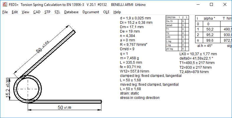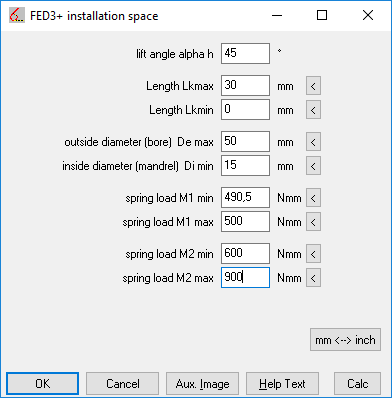 Similar to FED1+, you can now also enter an installation space in FED3+ and calculate thousands of springs with different wire diameters, coil diameters and coil numbers. From the calculated variants, you can then choose the optimum torsion spring for the respective application (maximum safety, lowest weight, smallest length, maximum resonance frequency, smallest tolerance of torque according to DIN 2194).