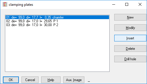 SR1: Edit -> Clamping Plates: Insert/Delete Plates with self-defined material data