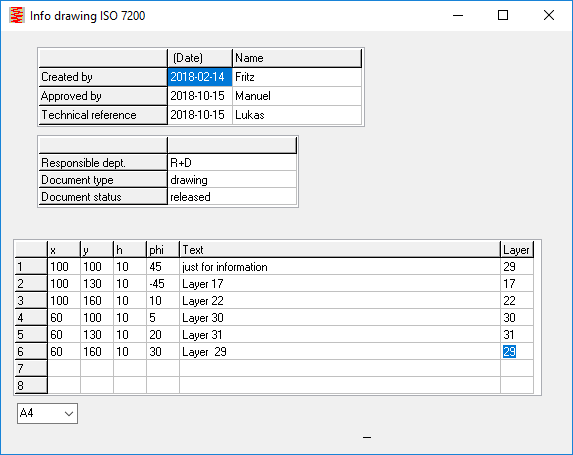 When entering additional text under "Document\Drawing Info", you can now also configure the layer. The colour is assigned to the layer under "File\Settings\Colour". If you configure colour white, the text will be displayed on the screen (if the background is black), but not printed.