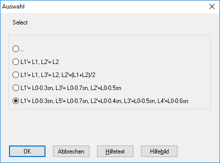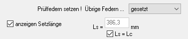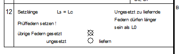Gemäß DIN 2096 wird bei warmgeformten Federn die Kennlinie zwischen 0,3*sn und 0,7*sn geprüft. Als Vorgabe für die Eingabe der Federlängen wurde deshalb L1’=L0-0.3sn, L3’=L0-0.7sn und L2’=L0-0.5sn ergänzt, sowie für 5 Meßstellen Li´= L0 – 0.3, 0.4, 0.5, 0.6 und 0.7 * sn.