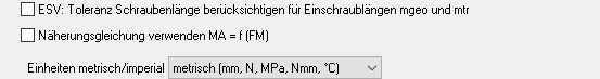 Je nachdem, ob Schraube oder Mutter angezogen wird, wird der mittlere Reibungsdurchmesser DKm aus Schraubenkopf und erster Klemmplatte oder aus Mutterfläche und letzter Klemmplatte berechnet. DKm wurde im Ausdruck und Quick-Ansichten ergänzt.