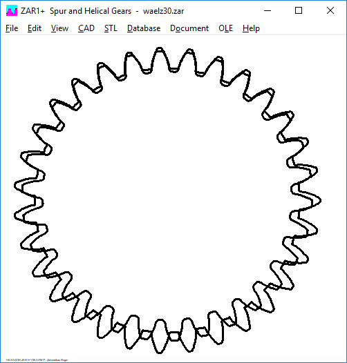 ZAR1+ calculates the gear wheels for the eccentric gearbox: rolling gear +30 teeth, ring gear –30 teeth.
