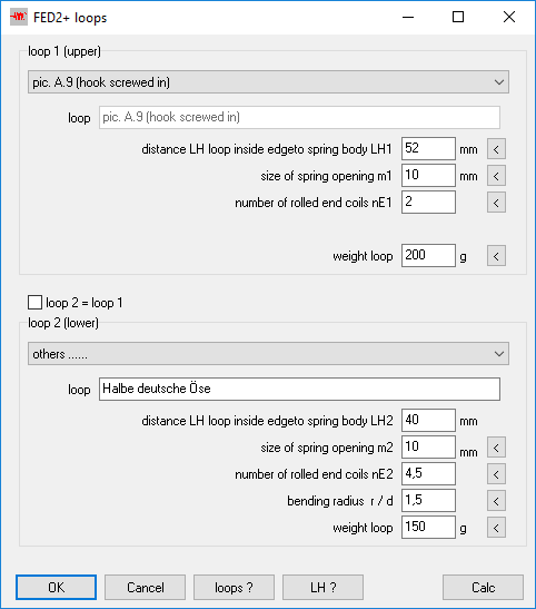 The bending radius can now be entered separately for loop 1 and loop 2. Nothing changes in the calculation of the bending stress, the smaller of the two values is decisive.