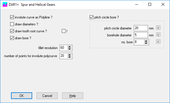 For the production of model gears with 3D printers, you can enter a bolt circle with holes in ZAR1+ under "STL \ Gear1,2":
