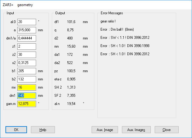 The strength of worm gears was previously calculated according to DIN 3996:1998-09. Now, the newer edition of 2012 has been integrated. ZAR3 + can now calculate strength and efficiency according to 3 methods: according to Niemann, according to DIN 3996: 1998 and according to DIN 3996: 2012. There were some changes on input: