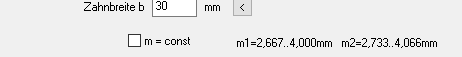 Bei unrunden Zahnrädern kann man entweder mit variablem Modul (m=2*r/z) oder mit konstantem Modul rechnen. Bei variablem Modul wird jetzt min- und max-Wert des Zahnradpaars im Eingabefenster angezeigt. Wenn die Anzeige wegen geänderter Eingabe verschwindet: Auf "Calc" klicken für Neuberechnung.