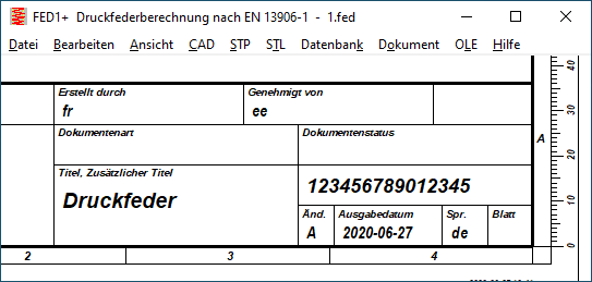 Wenn Zeichnungskopf ISO 7200 konfiguriert war, stand bisher unter "Änd." immer der nächste Änderungsindex (Versionsnummer Rev. nach ISO 7200). Wenn es noch keine Änderung gab, stand immer "A". Weil aber nicht eindeutig ist, ob in dem Feld der Index "A" stehen darf wenn es noch keine Änderung gab, kann man jetzt konfigurieren (Datei\Einstellungen\Zeichnung), daß das Feld leer bleibt wenn es keine Änderung gab.