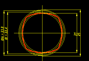 Profile DIN 32712 – P4C 25 with d1=25mm, d2=21mm, e=5mm -> dre=d2+4e=41mm