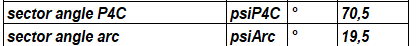 The P4C polygon trochoide profile is cut by an arc of a circle. The proportional angles are now displayed in the Quick3 view: psiP4C with polygon profile and psiarc with circular arc. The two angles add up to 90 degrees.