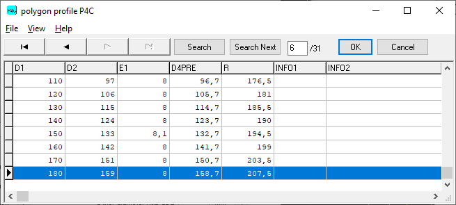 New sizes 110mm until 180mm according to DIN 32712-1:2009 have been added to database p4c.dbf.