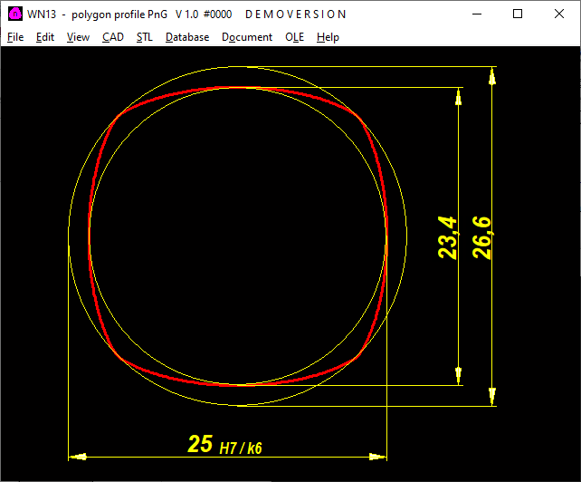 In WN6 you can also enter all dimensions directly and enter a greater eccentricity, which reduces the clamping. The hub profile may then no longer be able to be produced with polygon grinding machines; only as a drawn shaft profile, and the hub profile broached, cast, injection-molded or 3D-printed.