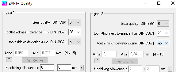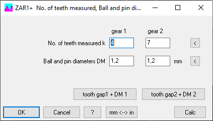 The suggested values with the "<" button were calculated from the profile shift factor xemin, whereas the input values were checked with tolerance center (xemin + xemax) / 2. In the case of large tooth flank tolerances, the suggested values for the maximum value of xe result in different numbers of measuring teeth and ball diameters than for the minimum value with a difference of more than 30%. For some borderline cases there was therefore the curious case that a warning "k measure!" was displayed even though the default value was used. The mean profile shift factor calculated from the tooth thickness dimensions is now used for all suggested values. I would like to thank Jong-Gak Kim from Pion for pointing this out.