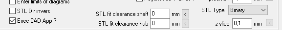 To shorten the printing time, you can enlarge the bore diameter. With helical gears you should configure the layer thickness "zslice" under "File \ Settings \ CAD". This should be the same as the layer thickness set on the 3D printer. Caution: do not set it unnecessarily small, halving zslice doubles the STL file size.