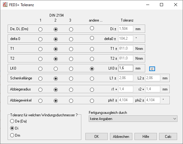 FED3+: Toleranz für LK0 bei Drehfedern mit und ohne Windungsabstand