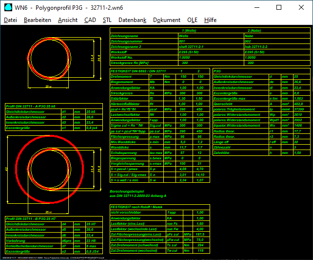 Das Widerstandsmoment des P3G-Profils wird sowieso nur für die Berechnung der Schub- und Biegespannung von Vollwellen verwendet. Für Nabe oder Hohlwelle wird das Widerstandsmoment eines Kreisrings verwendet.