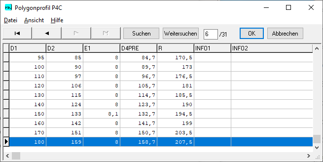 Neue Größen 110mm bis 180mm nach DIN 32712-1:2009 wurden in die Datenbank p4c.dbf übernommen.