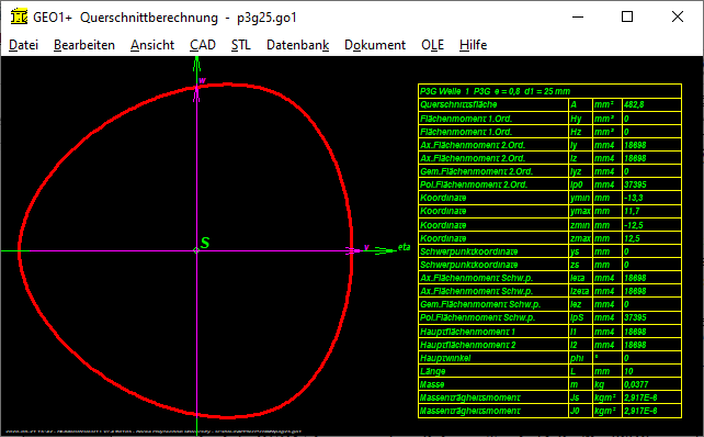 Mit GEO1+ kann man auch das Massenträgheitsmoment einer Welle mit P3G-Profil ermitteln.