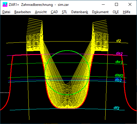 Auflösung Fußausrundung und Evolvente: wie in Zeichnungsdarstellung
