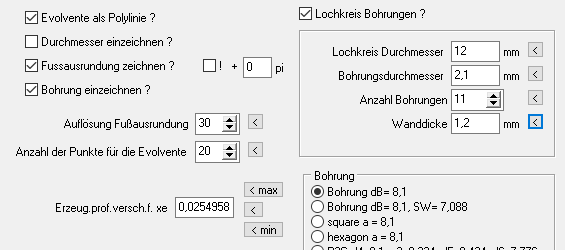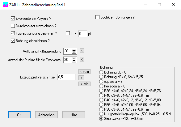 Unter "CAD\Zahnräder" kann man die Optionen wählen und eingeben: