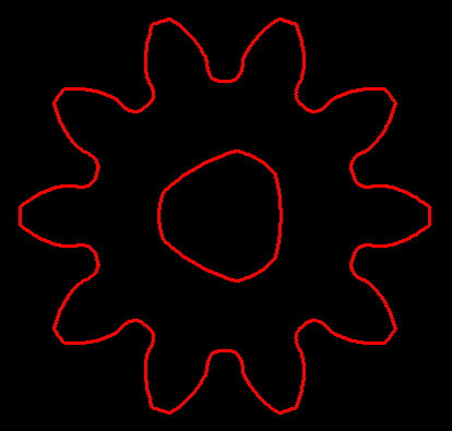 Für sehr stark unterschnittene Zahnräder (z.B. alfa=15° und x=-1.3) war die Fußausrundungstrochoide am Übergang zur Evolvente nicht sauber gezeichnet worden. Bei diesem ungewöhnlichen Zahnrad liegt der Teilkreisdurchmesser außerhalb der Verzahnung, und der Unterschnittbereich mit der Fußausrundung ist größer als die Evolvente. Auch solche Verzahnungen werden jetzt durchgängig gezeichnet, wenn man zuvor unter "CAD\Einstellungen\Fussausrundung zeichnen" den Startwinkel der Fussausrundung vergrößert (+2pi statt +0pi).