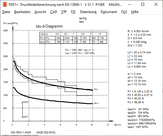 Wenn Sie mit der neuen Version eine alte Berechnungsdatei öffnen, wird als Werkstoffname z.B. "ISO 6931-1-4310-HS" statt "EN 10270-3-4310-HS" angezeigt. Sonst ändert sich nichts, alle Werkstoffkennwerte bleiben gleich.
