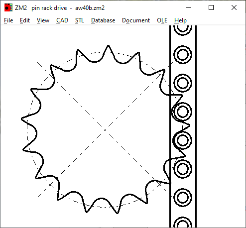 With ZM2 you can also calculate a gear with a pin wheel (pins on a bolt circle) instead of a pin rack.