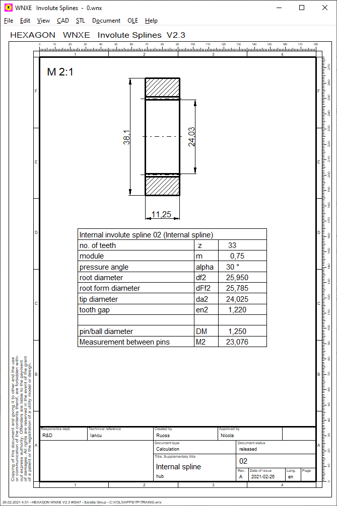 If you have entered the inner diameter of the shaft and the outer diameter of the hub, these are now drawn in and dimensioned in the production drawing.