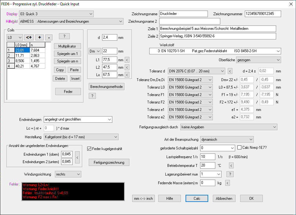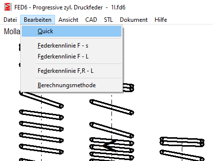In der neuen Quick-Eingabe wurden alle Eingabefenster für die Nachrechnung einer nichtlinearen zylindrischen Druckfeder in einem Eingabefenster zusammengefasst.