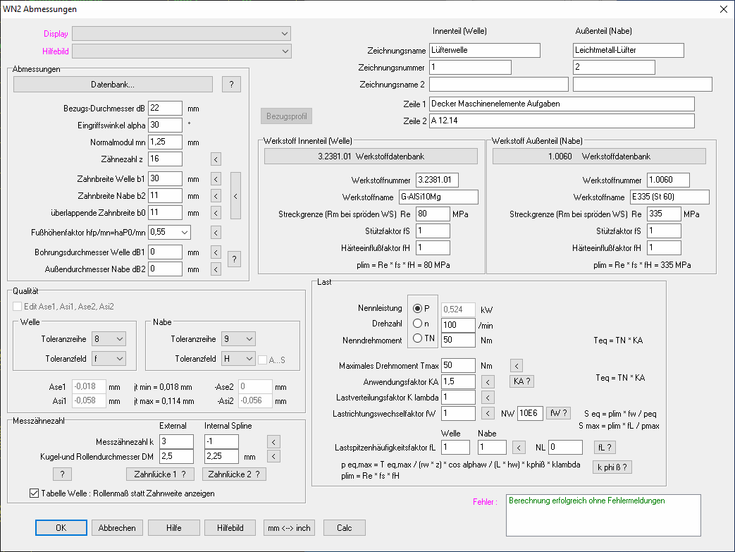 Im letzten Infobrief stand, dass in der DIN 5480 nicht angegeben ist, wie der Fußformkreisdurch-messer berechnet wird. Das war schlecht recherchiert, denn tatsächlich ist das sehr genau beschrieben, und zwar in DIN 5480 Teil 16. Von der DIN 5480 gibt es einen Teil 1, Teil 2, Teil 15 und Teil 16. Teil 1 ist der wichtigste. Teil 2 braucht man nicht, die Tabellenwerte kann man in WN2 berechnen. Teil 15 betrifft Lehrdorne und Lehrringe. Teil 16 betrifft die Herstellung der Verzahnung mit Wälzfräser und Räumwerkzeug. Teil 3 bis 14 gibt es nicht mehr. Das waren früher verschiedene Maßtabellen, die im Teil 2 neu zusammengefasst wurden.