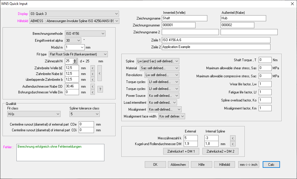 Der Grenzwert des Formkreisdurchmessers "dff lim" wird in der Verzahnungstabelle nicht mehr angezeigt, da er abhängig vom Gegenpart ist und somit nur für die gewählte Welle/Nabe-Verbindung gilt.