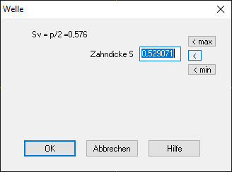 WN8: Eingabe Zahndicke/Lückenweite für Zahnformzeichnung