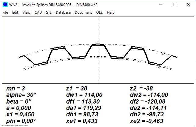 With WN5, the form diameter of the hub DFI according to ISO 4156 is output independently of the flank tolerances of the external spline profile.