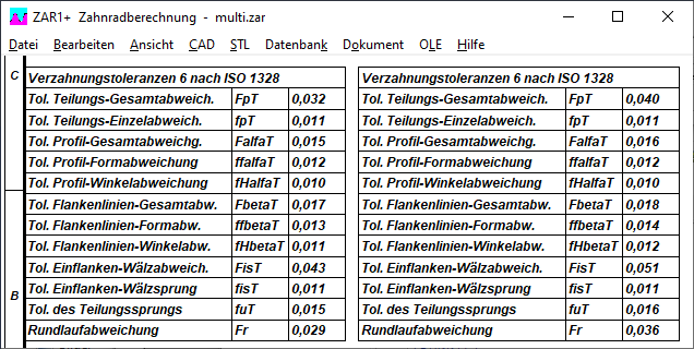 ZAR1+, ZAR5, ZAR7, ZAR8, ZAR1W: Ausdruck Zahnflankentoleranzen ISO 1328 deutsch