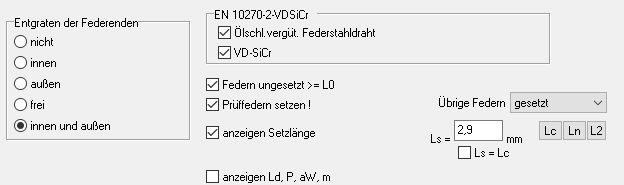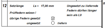 Unter Bearbeiten\Fertigungszeichnung kann man jetzt anklicken, ob die Texte "Prüffedern setzen !" und "Ungesetzte Federn dürfen länger sein als L0" angezeigt werden sollen. Bei ungesetzten Federn kann man den Text ausblenden.