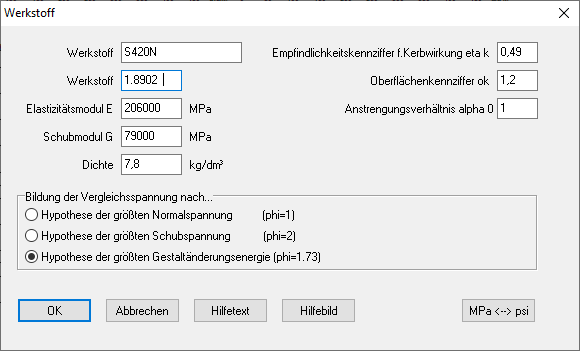 Bei den Werkstoffdaten wurde die Eingabe der Werkstoffnummer ergänzt und mit abgespeichert. Die Werkstoffnummer war bisher bei Auswahl des Werkstoffs aus der WST1-Datenbank übernommen worden, konnte aber in der Einzeleingabe nicht eingegeben oder editiert werden.