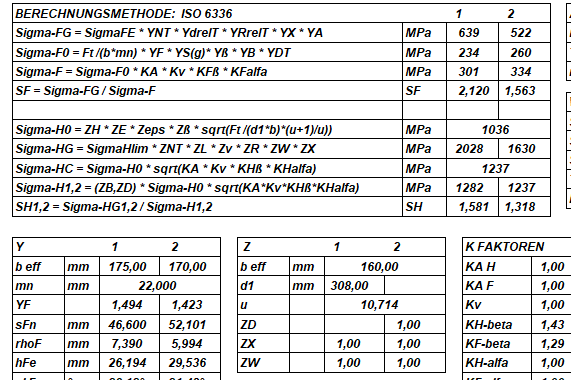 In der neuen Version gibt es ZW1 für das Ritzel und ZW2 für das Zahnrad. Der berechnete Faktor ZW nach Fall 2 und 3 gilt nur für das Rad (2) und nicht für das Ritzel (1), und in Fall 1 wird ZW1 (Ritzel) = 1 gesetzt, falls kleiner als 1 berechnet.