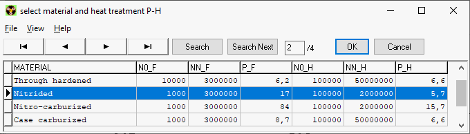 So far, the selection of the material type for load collectives in planetary gears applied to both the sun-planet gear pair and the planet-ring gear pair. Now you can choose different fatigue parameters for pairing S-P and P-H. There are different values for the application factors KAH and KAF calculated from the load spectrum because the number of load cycles is included in the calculation. So there are now 4 different application factors in ZAR5: KAF-SP, KAH-SP, KAF-PH, KAH-PH. In ZAR7 for plus planetary gears there are 6 and in ZAR8 for Ravigneuax gears there are even 8 different application factors (for 4 gear pairs Si-Pi, Pi-Pe, Pe-H, Pe-Se).