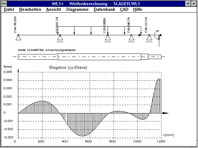 Mit der neuesten Version des Wellenprogramms lassen sich nun auch statisch unbestimmt gelagerte Wellen mit 3, 4 und 5 Lagerstellen berechnen. Allerdings geht die Rechenzeit dabei exponentiell nach