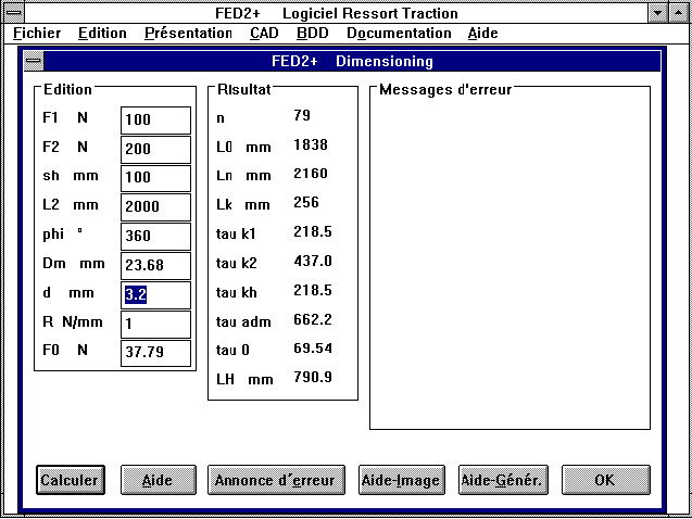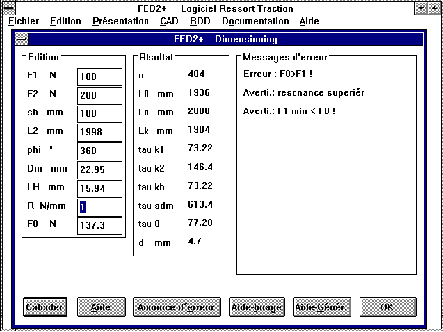 hundreds of pressure springs. FED1+ loads a file with input values,