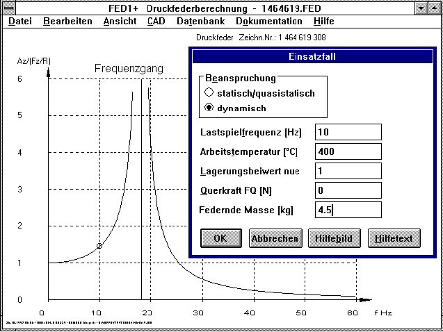 Mit FED1+ und FED2+ kann der Frequenzgang der Feder im Resonanzbereich